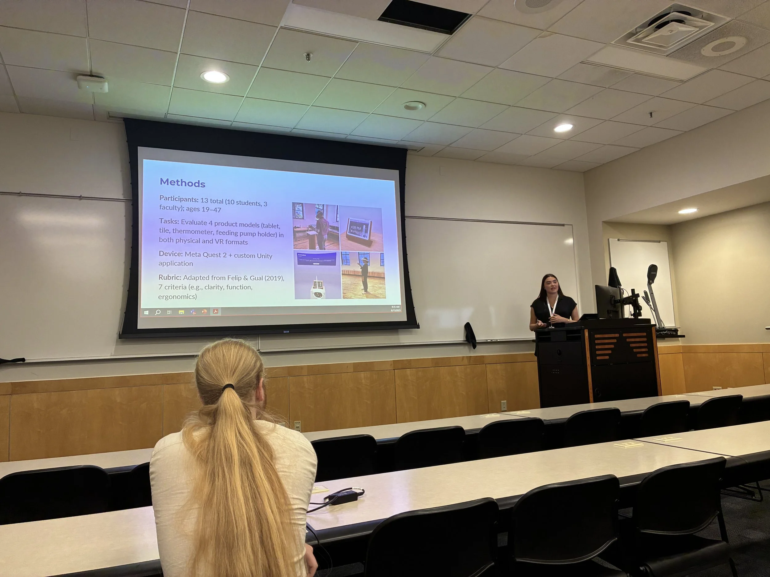 Aug 2025: Congratulations to undergraduate research assistant KayDee Pratt for a successful paper presentation at the International Conference on Engineering Design (ICED). Picture below: